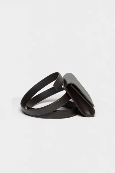 Leather pouch zipped to a belt that slides through a back coulisse, allowing it to be worn crossbody or adjusted around the waist. Designed for versatile styling and practical use, with a clean, minimal silhouette. Crafted from smooth, high-quality leather.
